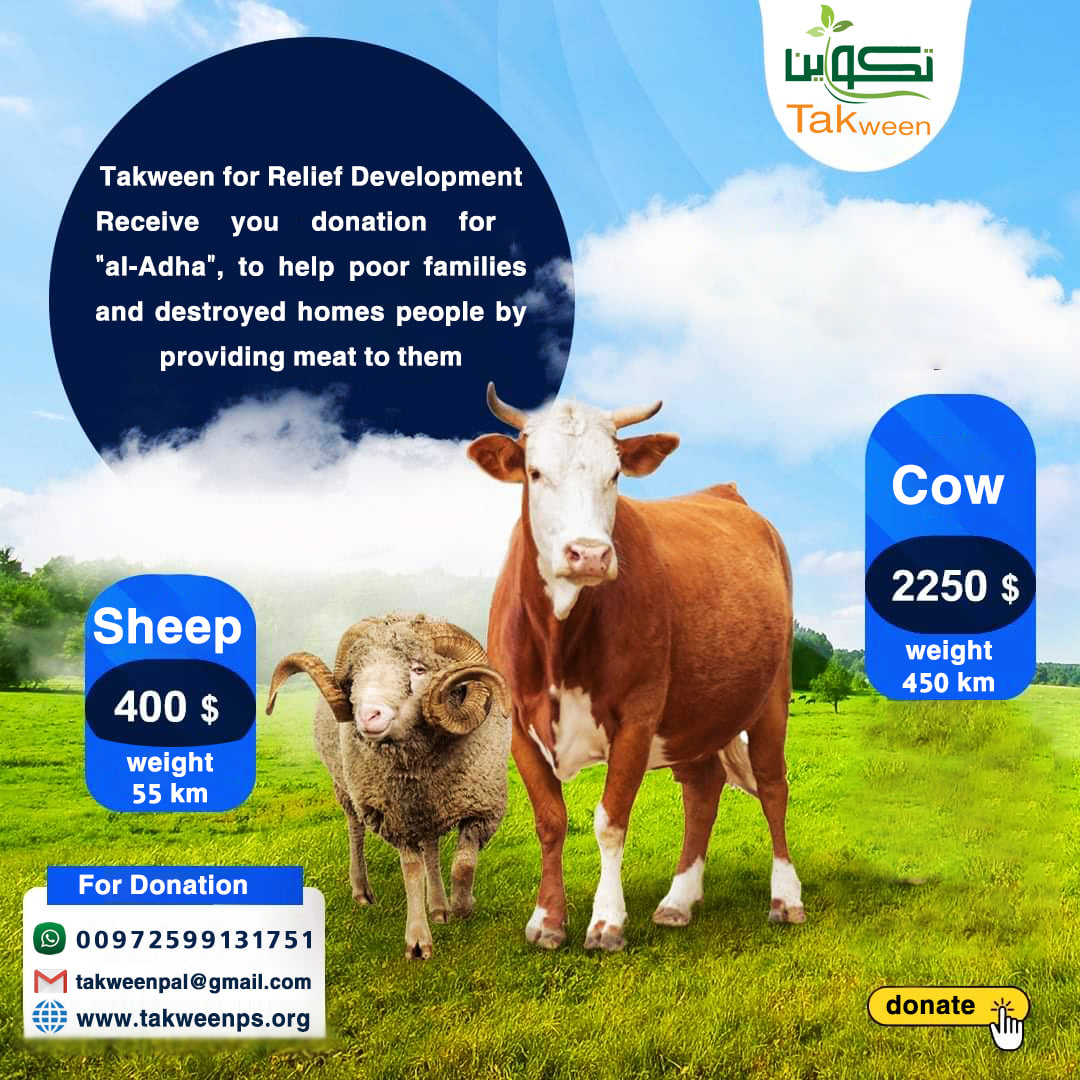 الحصول على جوائزجمعية تكوين للتنمية والتطوير تستقبل أضحياتكم لتوزيعها على الفقراء والمحرومين في قطاع غزة.